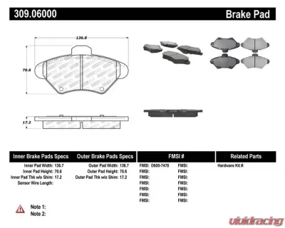 StopTech Sport Brake Pads with Shims/Hardware Front 309.06000 | Vivid Racing