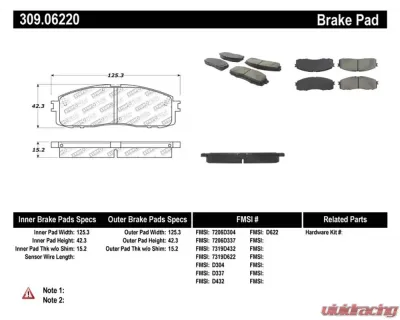 StopTech Sport Brake Pads with Shims Toyota Rear 309.06220 | Vivid Racing