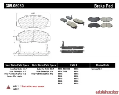 StopTech Sport Brake Pads with Shims/Hardware Front 309.05030 | Vivid Racing