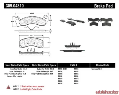 StopTech Sport Brake Pads with Shims/Hardware Ford Front 309.04310 | Vivid Racing