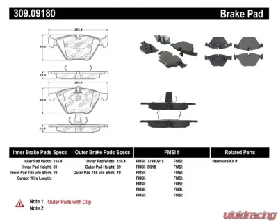 StopTech Sport Brake Pads with Shims/Hardware BMW Front 309.09180 | Vivid Racing