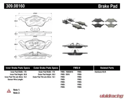 StopTech Sport Brake Pads with Shims/Hardware Ford Focus Front 2000-2001 for 2000-2001 Ford Focus 309.08160 | Vivid Racing