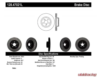 The StopTech Drilled Sport Rotors are engineered to fit perfectly with your vehicle's factory brake system, making installation straightforward and hassle-free. Upgrade your braking system today and experience the difference!