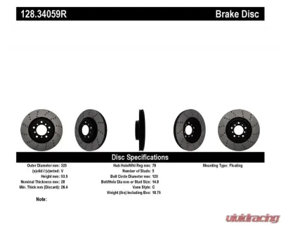 The StopTech 128.34059R rotors are engineered with high carbon metallurgy in most applications, promoting quieter operation and better crack resistance. The premium e-coating not only enhances the look of your rotors but also offers protection against corrosion, ensuring they look great and perform well for years to come.