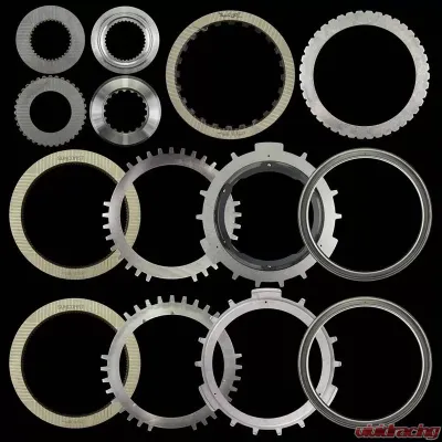 Redesigned apply pistons with improved rubber compounds proven to hold higher heat. This custom piston allows us to use a thicker spring apply plate which replaces the thin OEM one that will cone and cause uneven apply surface resulting in premature clutch failure.