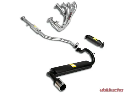 The Supersprint 614130 features a complete system designed to optimize exhaust flow, which can help improve engine performance. The use of T304 stainless steel not only enhances the aesthetic appeal but also ensures that the system can withstand the elements without rusting. This system is designed to work seamlessly with the factory catalytic converter, making it a practical upgrade for enthusiasts looking to enhance their vehicle's performance without compromising on quality.