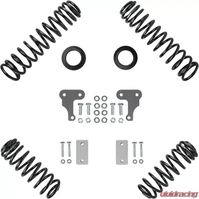 - Multi-rate, progressively wound coil springs increase lift height to 2 inches over stock. Front and rear coil springs are all new and have been designed specifically for the JL platform. Like OEM, the coil springs are unique lengths for each corner of the vehicle to compensate for weight distribution and prevent leaning. Longest in class free length prevents coil springs from coming unseated at full articulation and coil spring block height has been designed around optimal bump stop spacing for the lift height and tire size. Industry first closed and ground lower ends of the front coil springs ensure perfect fitment with the included front lower coil spring isolators. Our coil springs are guaranteed to resist bowing and have a lifetime guarantee against sagging/breakage.