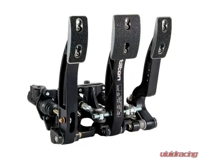 Tilton's 800-Series 3-pedal floor mount pedal assembly merges the performance of 900-Series pedal assembly technology and the renowned value of 600-Series pedal assemblies. Features high-efficiency spherical bearing type balance bar and pivot-mount master cylinder design.