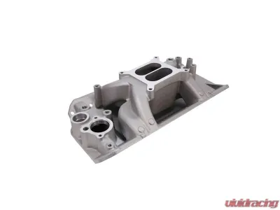 TSP's dual-plane air gap intake manifold for the AMC V8 is ideal for high-performance applications. Its improved design is complimented by an open area under the plenum. This feature ensures less heat transfer from the engine, meaning the air/fuel charge will be cooler and produce more power and torque. Producing power and torque comparable to single-plane manifolds, it improves drivability and throttle response like other dual-planes and performs best between 1,500 and 6,500 rpm. It is cast from lightweight aluminum and features a relatively low profile for great hood clearance.