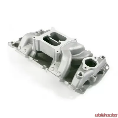 Chevy Small Block Carbureted Dual Plane Air Gap Satin Aluminum Intake Manifold