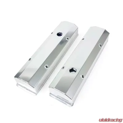 Chevy Small Block Perimeter-Bolt V8 (265-400) Clear Anodized Fabricated Aluminum Long-Bolt Valve Covers with Breather Holes