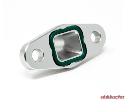 Torque Solution Offset / Port Matched Oil Drain Flange is designed to give you extra clearance from the compressor housing making for an easier install on T3/T4 PTE, Borg Warner, Turbonetics, Comp, etc turbos. Made from CNC 6061 billet aluminum and integrated with a -10AN flare fitting. The bottom of the flange is also port matched with a tapered bore to promote the oil flow and to prevent oil pooling in the turbo. We have also incorporated a recess with an o-ring gasket for a leak proof seal.