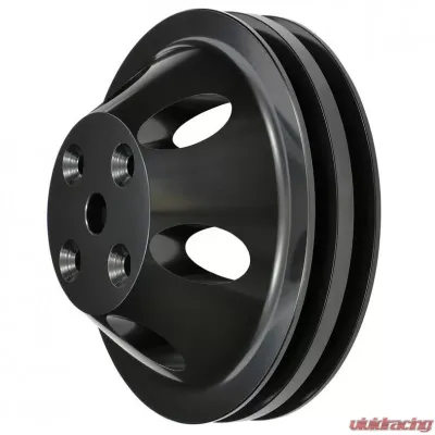 BLACK Aluminum WATER PUMP Pulley; 2 V-Groove; 69-85 SB CHEVROLET 283-350; LONG Water Pump.