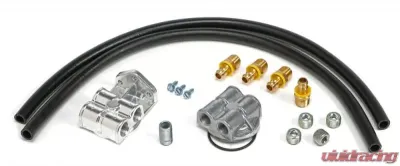 CAST ALUMINUM SINGLE OIL FILTER RELOCATION KIT; HORIZONTAL PORT, 90 (degree) FILTER BYPASS; 2-1/2 in. I.D., 2-3/4 in. O.D. OIL FILTER FLANGE; 18MM x 1.5 NIPPLE