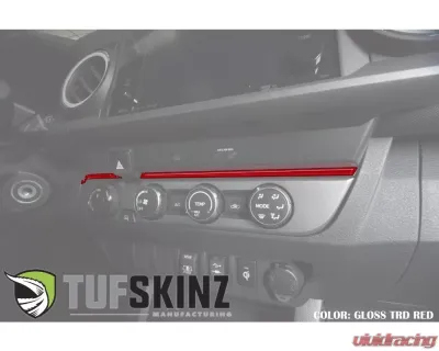 TUFSKINZ Accent Strip Above Climate Control piece is designed to fit over the trim piece of that area. Prep and installation can simply be completed within 5 minutes.