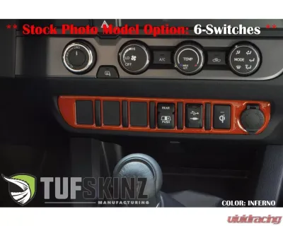 Add a new interior look to your Toyota Tacoma by installing TUFSKINZ Center Dash Switch Panel. These kits add style and protection to your vehicle and are fittingly positioned over the trim surrounding the center dash switches.