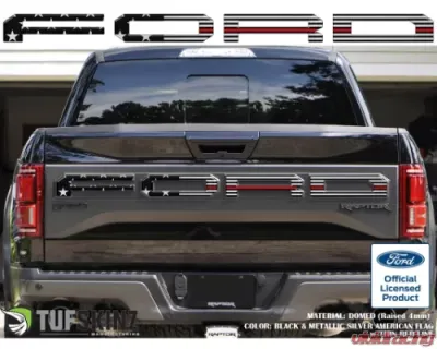 Tufskinz FORD Raptor Tailgate Overlays Fits 2019-2022 Ford F-150 Black and Metallic Silver American Flag w/Thin Red Line Ford F-150 2019-2022 FRD025-GTO-454-G | Vivid Racing