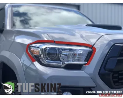 Tufskinz Headlight Accent Trim Fits 2016-2020 Toyota Tacoma 6 Piece Kit-OE Color Trd Red Textured TAC063-TFLMP-439-X | Vivid Racing