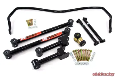 This is a complete rear suspension kit and includes all items needed to rebuild the rear suspension on your 1964-1972 A-Body. This kit includes tubular lower control arms, tubular upper controls, adjustable frame braces, rear end housing bushings, 1" solid sway bar and new Grade 8 hardware. This is a direct bolt in kit and requires no welding or modifications. Control arms feature grease-able Energy Suspension bushings and are constructed of DOM steel tubing. The lower control arms feature reinforced sway bar holes to work with the new solid chromoly sway bar. The included frame braces are a direct bolt on and do not require denting the floor boards like our competitors design, they are bent to follow the contour of the vehicles floor board. This entire kit is manufacture by UMI Performance and made in the USA
