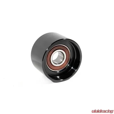 This is a very special idler. It uses a high speed double row bearing to handle abuse in the worst conditions. Use it between the supercharger and crank to prevent belt walking. Use it on the end of tensioners. It is light weight while still taking all the abuse you can throw at it. Hard black annodize 17 MM bearing bore Offset to one side for use as a replacement for VMP 58 MM, 75 MM, 90 MM, and 100 MM idlers with the single row bearing. Fits factory Shelby GT500 tensioners '07-14 7R3Z-6B209-AA '20+ KR3Z-6B209-A. Fits VMP upgraded Shelby GT500 tensioner VMP-SUT007. Fits VMP/Roush style tensioner VMP-SUT002 when used with VMP-ISPC-7-17-SM machined aluminum spacer. Fits VMP Odin/Gen3R upgrade tensioner for no-grind FEAD VMP-SUT009. May fit other tensioners from Thumprrr, Whipple, and Kenne Bell