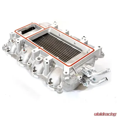 Supercharged lower intake manifold for Gen1 and Gen2 5.0 L Coyote engines with 3/4" intercooler lines PN: VMP-YORD-34 Looking for a way to install your VMP or Roush supercharger on a Gen1 or Gen2 Coyote? this intake manifold is the missing link. Allows use of positive displacement supercharger with Roush style bolt pattern. Examples include Roush 2.3 L, VMP 2.3 L, VMP 2.65 L Gen3 and Gen3R superchargers for the Coyote. This is the same intake manifold included in full VMP Gen3R Coyote kits but sold by itself. We build these intakes with the latest VMP upgrade components making them an incredible value. Works with VMP Street, Race, and 10-rib FEAD kits. Includes: Upper and lower intake aluminum castings assembled with all hardware VMP-SUC050 intercooler brick with high-flow ports VMP-SUG000 boost-lok gaskets for supercharge mounting face VMP-SCC013 aluminum 65 water inlet/outlet tubes for 3/4" hoses VMP-ING007 intake to cylinder head gasketsNPT plugs in all threaded holesLower intake to cylinder head mounting hardware Fully assembled ready to install on the engine. Takes all aftermarket Coyote fuel rails. Also available with with intercooler fittings for 3/4" hoses, 1" hoses, and 1" NPT female threaded bungs.