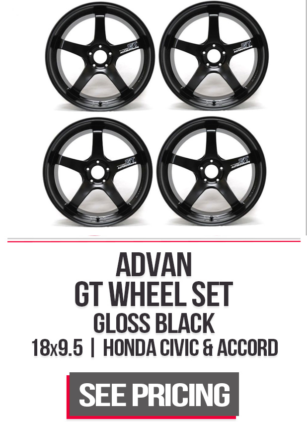 Advan GT Premium Wheel Set 20x9.5 | 20x11 Racing Gloss Black Advan GT Wheel Set of 4 Honda Civic Type-R 18x9.5 5x120 38mm Racing White Advan GT Wheel Set of 4 Subaru| Civic Non Type-R | Accord 18x9.5 5x114.3 45mm Semi Gloss Black