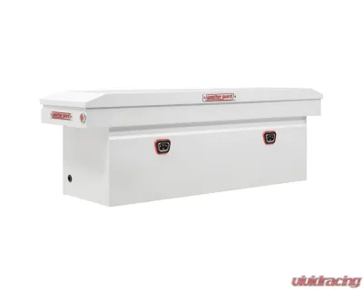 The new Weather Guard 1KEY Ultralock is the next advancement in truck box security. The Ultralock combines one key simplicity with detent technology, providing quick visual assurance your gear is locked down and protected. The box features the new push button lock that can code multiple boxes on a truck or entire fleet to the same key. The Model 128-3-04 is a deep steel truck toolbox and has a storage capacity of 15.0cu ft. It is coated with a White ARMOR TUF Powder Coat finish ensuring years of dependability.