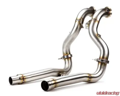 The AMG GT and AMG GT-S Midpipes connect effortlessly to the Downpipes using a low-profile V-Band flange. They finish off with an OEM coupling, ensuring a snug fit with the factory cat-back exhaust.