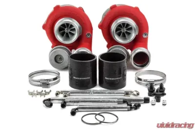 This turbo upgrade is a complete solution, replacing the factory turbochargers with high-performance alternatives. The new turbochargers feature ball bearing units and CNC machined billet aluminum compressor wheels, which are designed to handle much higher power levels than the stock options.