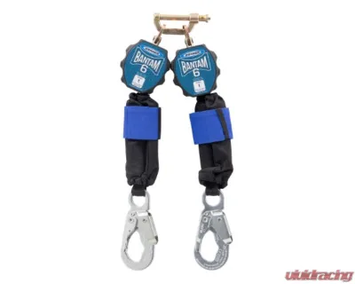The Bantam R433006 twin leg compact self-retracting lifeline provides lightweight safety in the palm of your hand. At just over 5 lbs, the twin leg Bantam can be connected at the users back without causing fatigue. As a Class 1 device that keeps the maximum arrest distance to 24 inches, Bantam is ideal for low clearance applications and accomplishes this while keeping the average arrest forces to 900 lbs. Available in a 6ft length and constructed with tough UHMWPE webbing, Bantam offers a range of lifeline hook options and is combined with the Twin leg Pin Adaptor into a twin leg model for 100% tie-off applications.