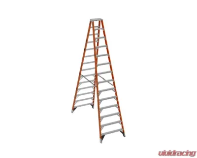 The T7414 Fiberglass 14-foot Twin Stepladder features a duty rating of 375 pounds per side of the ladder. Designed for one or two-person jobs, the T7400 series ladders have heavy gauge aluminum tops and feature heavy-duty internal spreaders to resist damage around the worksite or in transit. The GLAS*MARK® Violater stripes on the rails make the ladder more visible and the EDGE® bracing system and external rail shields add to the long lasting durability of these ladders. Fiberglass rails are non-conductive for working near electricity.