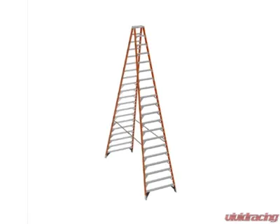 The T7420 Fiberglass 20-foot Twin Stepladder features a duty rating of 375 pounds per side of the ladder. Designed for one or two-person jobs, the T7400 series ladders have heavy gauge aluminum tops and feature heavy-duty internal spreaders to resist damage around the worksite or in transit. The GLAS*MARK® Violater stripes on the rails make the ladder more visible and the EDGE® bracing system and external rail shields add to the long lasting durability of these ladders. Fiberglass rails are non-conductive for working near electricity.