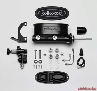 Wilwood has packaged the popular Aluminum Tandem Chamber Master Cylinder with the Combination Proportioning Valve, mounting bracket, fluid tubes and mounting hardware in a kit. Tandem Master Cylinder represents the latest in refinements in brake pressure actuation and fluid control. The slotted flange mounting makes it a simple bolt on for many OE mounts including the popular Chrysler, Corvette, GM, and Ford Mustang bolt patterns and is compatible with manual or power brake system applications. Master cylinders are available in four bores sizes, 7/8", 15/16", 1.00" or 1-1/8", and three finishes, standard, ball burnished or black E-coat. The combination proportioning valve substantially simplifies wiring and brake proportioning adjustments on vehicles with custom brake systems. The combination block maintains full isolation between front and rear fluid circuits and is specifically designed to accompany the Tandem Chamber Master Cylinder. The combo valve and bracket are black E-coated for a performance look and long lasting durability. Stainless steel fluid tubes are precision bent with preinstalled plated steel tube nuts for a simple bolt-on installation between the Combination Proportioning Valve and the Wilwood Tandem Master Cylinder. Stainless steel button head fasteners thread into the bracket for a simple installation and years of durable, rust-free performance. Simply connect the fluid lines, bleed the system, and you're finished.