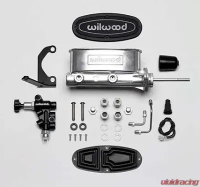 Wilwood has packaged the popular Aluminum Tandem Chamber Master Cylinder with the Combination Proportioning Valve, mounting bracket, fluid tubes and mounting hardware in a kit. Tandem Master Cylinder represents the latest in refinements in brake pressure actuation and fluid control. The slotted flange mounting makes it a simple bolt on for many OE mounts including the popular Chrysler, Corvette, GM, and Ford Mustang bolt patterns and is compatible with manual or power brake system applications. Master cylinders are available in four bores sizes, 7/8", 15/16", 1.00" or 1-1/8", and three finishes, standard, ball burnished or black E-coat. The combination proportioning valve substantially simplifies wiring and brake proportioning adjustments on vehicles with custom brake systems. The combination block maintains full isolation between front and rear fluid circuits and is specifically designed to accompany the Tandem Chamber Master Cylinder. The combo valve and bracket are black E-coated for a performance look and long lasting durability. Stainless steel fluid tubes are precision bent with preinstalled plated steel tube nuts for a simple bolt-on installation between the Combination Proportioning Valve and the Wilwood Tandem Master Cylinder. Stainless steel button head fasteners thread into the bracket for a simple installation and years of durable, rust-free performance. Simply connect the fluid lines, bleed the system, and you're finished.