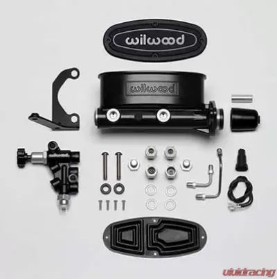 Wilwood has packaged the popular Aluminum Tandem Chamber Master Cylinder with the Combination Proportioning Valve, mounting bracket, fluid tubes and mounting hardware in a kit. Tandem Master Cylinder represents the latest in refinements in brake pressure actuation and fluid control. The slotted flange mounting makes it a simple bolt on for many OE mounts including the popular Chrysler, Corvette, GM, and Ford Mustang bolt patterns and is compatible with manual or power brake system applications. Master cylinders are available in four bores sizes, 7/8", 15/16", 1.00" or 1-1/8", and three finishes, standard, ball burnished or black E-coat. The combination proportioning valve substantially simplifies wiring and brake proportioning adjustments on vehicles with custom brake systems. The combination block maintains full isolation between front and rear fluid circuits and is specifically designed to accompany the Tandem Chamber Master Cylinder. The combo valve and bracket are black E-coated for a performance look and long lasting durability. Stainless steel fluid tubes are precision bent with preinstalled plated steel tube nuts for a simple bolt-on installation between the Combination Proportioning Valve and the Wilwood Tandem Master Cylinder. Stainless steel button head fasteners thread into the bracket for a simple installation and years of durable, rust-free performance. Simply connect the fluid lines, bleed the system, and you're finished.