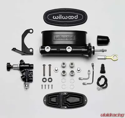 Wilwood has packaged the popular Aluminum Tandem Chamber Master Cylinder with the Combination Proportioning Valve, mounting bracket, fluid tubes and mounting hardware in a kit. Wilwood's Tandem Master Cylinder represents the latest in refinements in brake pressure actuation and fluid control. The slotted flange mounting and included rod assembly makes it a simple bolt on for Early Ford Mustang and fully is compatible with manual system applications. Mustang Tandem Master cylinders are available in two bores sizes, 7/8"or 15/16", and three finishes, standard, ball burnished or black E-coat. The combination proportioning valve substantially simplifies wiring and brake proportioning adjustments on vehicles with custom brake systems. The combination block maintains full isolation between front and rear fluid circuits and is specifically designed to accompany the Tandem Chamber Master Cylinder. The combo valve and bracket are black E-coated for a performance look and long lasting durability. Stainless steel fluid tubes are precision bent with preinstalled plated steel tube nuts for a simple bolt-on installation between the Combination Proportioning Valve and the Wilwood Tandem Master Cylinder. Stainless steel button head fasteners thread into the bracket for a simple installation and years of durable, rust-free performance. Simply connect the fluid lines, bleed the system, and you're finished.