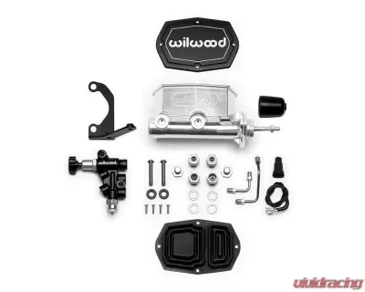 Wilwood has packaged the new Compact Tandem Chamber Master Cylinder (w/ pushrod) with the Combination Proportioning Valve, L/H mounting bracket, fluid tubes and mounting hardware in a kit. Tandem Master Cylinder represents the latest in refinements in brake pressure actuation and fluid control in a compact package with only 6.55" from mounting flange to end. The slotted flange mounting makes it a simple bolt on for many OE mounts including the popular Chrysler, Corvette, GM, and Ford Mustang bolt patterns and is compatible with manual or power brake system applications. Master cylinders with pushrods are generally intended for manual brake use and available in two bores sizes, 7/8" or 15/16", and two finishes, ball burnished or black E-coat. The combination proportioning valve substantially simplifies wiring and brake proportioning adjustments on vehicles with custom brake systems. The combination block maintains full isolation between front and rear fluid circuits and is specifically designed to accompany the Tandem Chamber Master Cylinder. The combo valve and left-hand side bracket are black E-coated for a performance look and long lasting durability. Stainless steel fluid tubes are precision bent with preinstalled plated steel tube nuts for a simple bolt-on installation between the Combination Proportioning Valve and the Wilwood Tandem Master Cylinder. Stainless steel button head fasteners thread into the bracket for a simple installation and years of durable, rust-free performance. Simply connect the fluid lines, bleed the system, and you're finished.