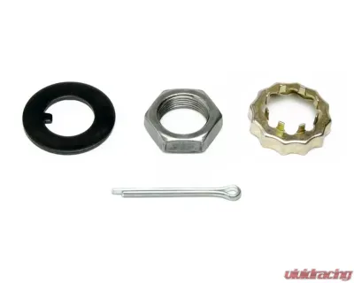 Lock nut kit for Wilwood's Pro Spindles. Can also be used with popular Pinto / Mustang II and Granada spindle pins. Contains: Spindle nut, lock assembly, washer and cotter pin.