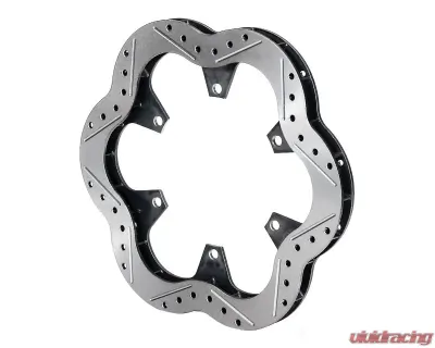 Super Alloy Steel 10.50" x .780" Vented Rotors are one of Sprint racing's lightest .750" to .810" thickness class rotor at a weight of only 3.20 pounds. Wilwood's proprietary Super Alloy Steel greatly enhances the durability and lifespan of this rotor over comparable lightweight steel or iron rotors. A Drilled, slotted, and scalloped design with 24 cooling vanes provides excellent high temperature stability, rapid heat dissipation, and consistent performance from the brake pads.