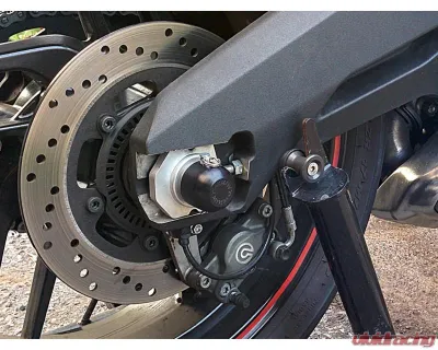 Woodcraft axle sliders are designed for racers with a focus on ease of use and practicality. Woodcraft axle sliders help to protect the valuable fork lowers and swingarm on your bike in the case of a crash. We worked long and hard on our axle slider design to ensure they ONLY ADD 5 SECONDS TO A WHEEL CHANGE! No more dealing with through rods- simply pull the quick release pin and you're ready for a wheel change. Our pucks receive the perpendicular mount passed down from our patented frame sliders to provide a solid sliding surface- maximizing puck life.