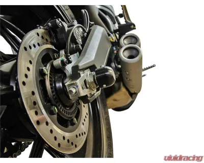 Woodcraft axle sliders are designed for racers with a focus on ease of use and practicality. Woodcraft axle sliders help to protect the valuable fork lowers and swingarm on your bike in the case of a crash. We worked long and hard on our axle slider design to ensure they ONLY ADD 5 SECONDS TO A WHEEL CHANGE! No more dealing with through rods- simply pull the quick release pin and you're ready for a wheel change. Our pucks receive the perpendicular mount passed down from our patented frame sliders to provide a solid sliding surface- maximizing puck life.