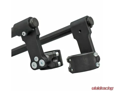 3 inch Clipon Risers (with standard 7/8" bars) Woodcraft 3-piece split clipon risers are specially designed to make installation and removal a snap. Our 3-piece design is race proven and makes it easy to service your clipons below the triple clamp without having to disassemble the entire front end. Special attention has also been taken to save weight wherever possible on these clamps. The bars themselves are 12 inches long and are easily adjusted to whatever custom width you desire. Racers no longer have to worry about replacing an expensive complete clipon assembly after a crash - these risers use an inexpensive universal handlebar.