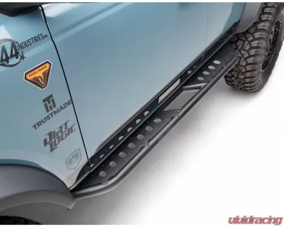 ZROADZ TRAILX.R Series Rock Slider Side Steps are built to perform under the most rigorous conditions while still providing a large step area with perforated top plates for aid during entry. Designed with high clearance in mind to protect your vehicle's rocker panels, ZROADZ Rock Slider Side Steps feature a rear kick-out that helps you slide across larger obstacles and doubles as an oversized step to help you reach your gear mounted to your roof. ZROADZ Rock Slider Side Steps are made from heavy gauge 2.0-inch mild steel tubing and come standard with a 3-stage epoxy-based black powder-coated finish. Installation is completed in less than 30 minutes. ZROADZ Rock Slider Side Steps are covered with a limited 3-year warranty against material and workmanship and a 1-year warranty on the finish.