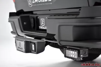 Universal Hitch Step locates (2) 3 Inch LED Light Pods and slides into a 2 inch hitch receiver. Does not include LED Lights. This system simply installs by sliding the unit into the vehicles hitch receiver. Custom made to ZROADZ specifications with precision laser cut steel, pressed and formed to our tooling fixtures and powder coated black.