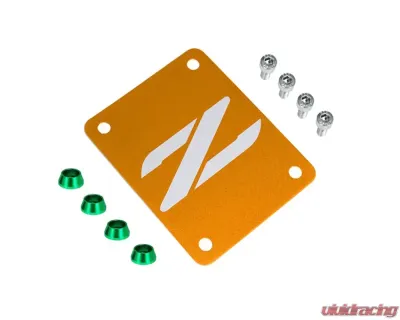 Z32 300zx owners have been relocating their PTUs for years. The Z32 design is fantastic, but putting an electrical component directly behind the radiator wasn't the ideal location. Once this relocation is complete, the OEM Passenger-Side Timing Cover has four holes left unfilled. This product was produced based on an enthusiasts idea to use these left-over holes as a decoration opportunity. Engraved with a Z32-style "Z", they're great for solving this issue or utilize this for another creative project, who knows? This plate is offered in "kit" form supplied with ZSPEC finish-washers and stainless fasteners to those who would like a simply solution to this side-effect of relocating the 300zx PTU.