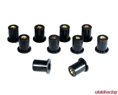 Well Nuts are easy to use - drill a hole where fastener is needed the same diameter as the well-nut, insert well nut and fasten whatever it is you need there.These ZSPEC rubber-composite Well Nuts are M8-1.25 thread pitch (works with typical metric fasteners) and the hole-diameter required for use is ~17.5mm.